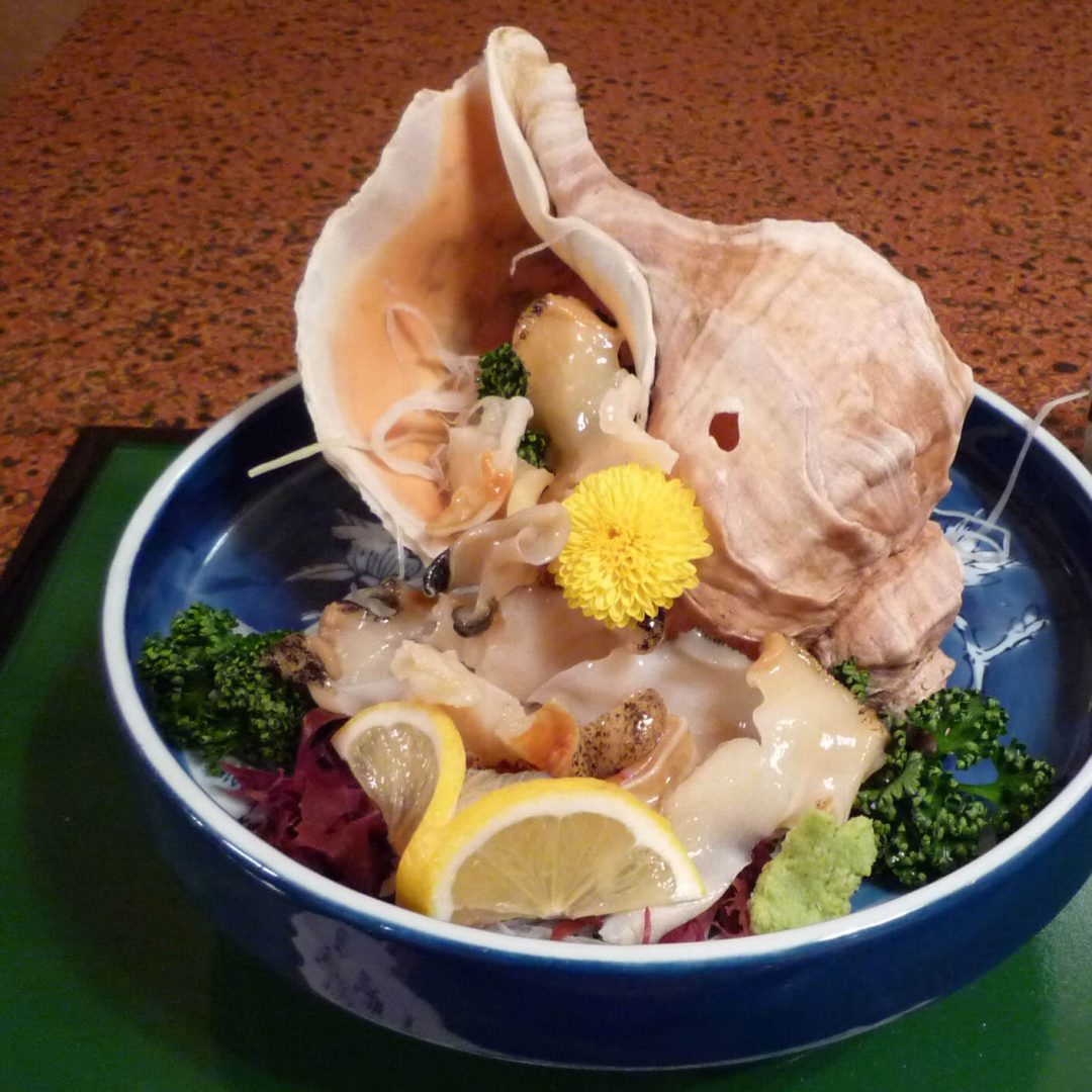 品嘗當地產的海螺所烹製而成的各種菜餚