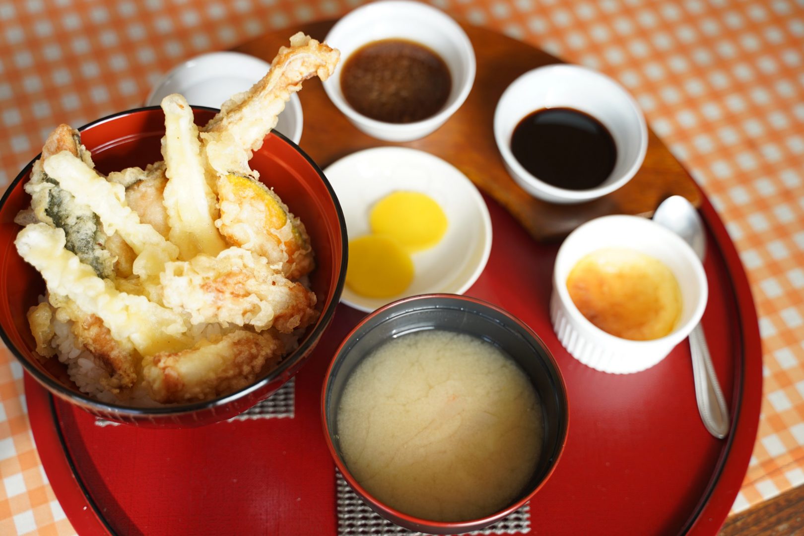 大樹起司鮭魚蓋飯是結合了炸起司天婦羅和炸秋鮭天婦羅的當地美食。