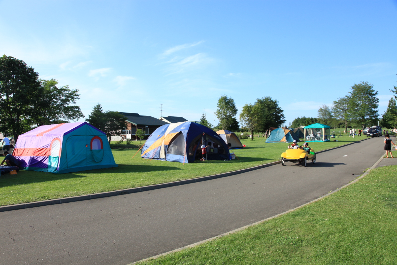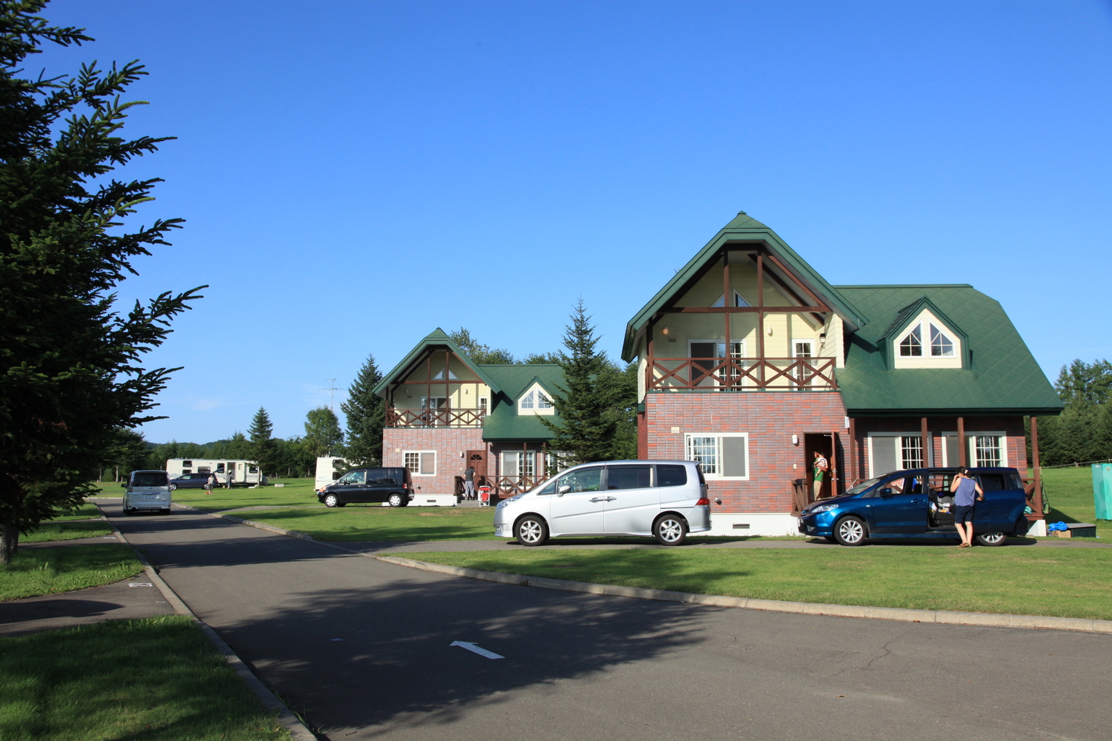 一望無際的綠色草地、拖車房,加上歐式別墅、充足的帳篷場地,環境舒適宜人。
