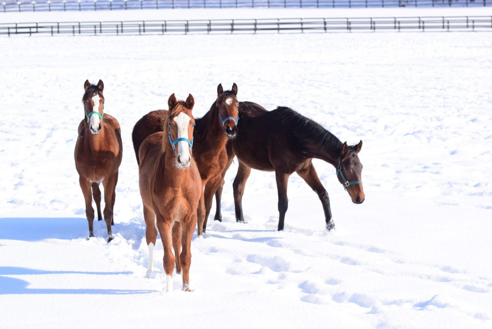 被美麗的純種馬群在寬廣的牧場草地上怡然自得地生活的畫面所療癒。在冬季有機會可以為在雪地上奔跑的馬攝影。 如果幸運的話還遇到小馬。