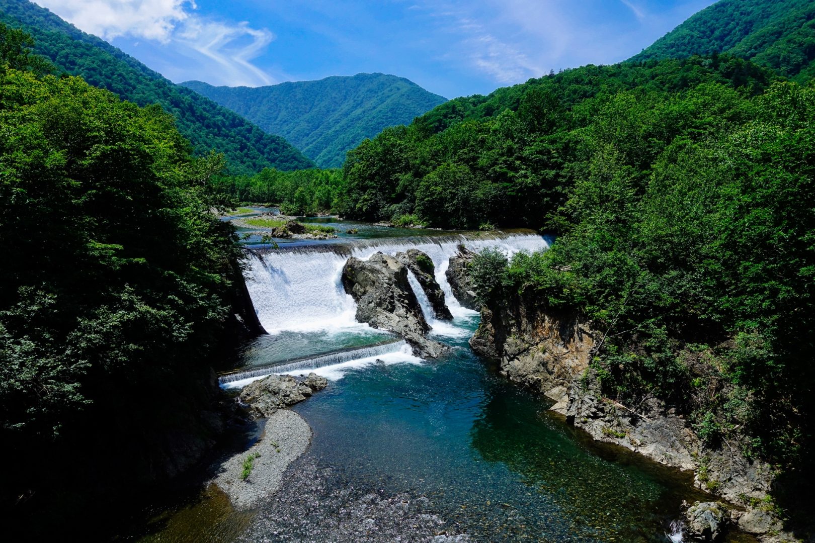 PYOUTAN瀑布 中札内村 推薦的季節 三月至五月六月至八月 拍照景點 自然 觀光景點 在雄偉的大自然之中,以日高山脈為背景,充满力量的流水飛濺而下的畫面令人驚嘆。 沐浴在由瀑布的水花和從豐富的天然森林中所產生的負離子! Map