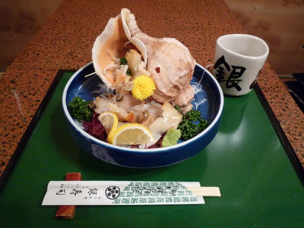 提供當地所捕獲的新鮮海鮮。 推薦的「真海螺」是在店內的活水槽中放養,