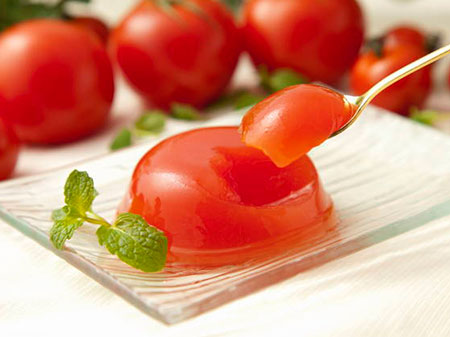 豪氣地使用不添加農藥和化學肥料所孕育出,甜度高、茄紅素含量也很豐富的心型迷您蕃茄「小蕃茄」,細心製作出農園特園特製富含水份的蕃茄果凍。